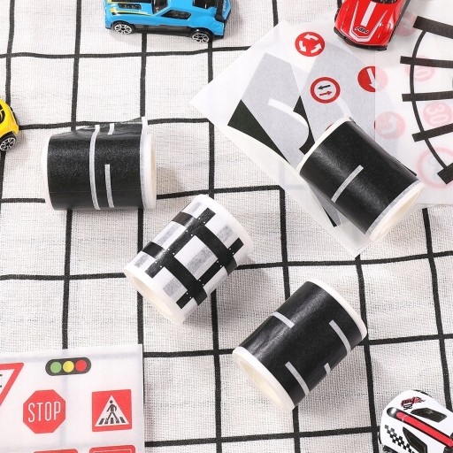 Ten produkt to zestaw taśm maskujących i naklejek drogowych. Łatwo usuwalny po zakończeniu zabawy, bez pozostałości. Świetny prezent dla dzieci, chłopców i dziewcząt. Od wieku malucha wzwyż. Idealny do instalacji zeszytów lub pamiętników, świątecznych dekoracji, kreatywnych dróg drogowych DIY maskujących krzywą drogę dla zabawek dla dzieci.