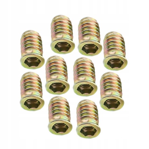 Przeznaczony głównie do mebli drewnianych wykończenia powierzchni ocynkowany Specjalne metalowe mocujące z gwintem wewnętrznym Nakrętki wkładek meblowych zapewniają mocny, trwały dla drewna i blach na bazie drewna Unikalny zewnętrzny zapewnia skuteczne blokowanie i zapewnia dużą odporność na wyciąganie w wyniku skręcania lub wibracji Materiały: żelazo