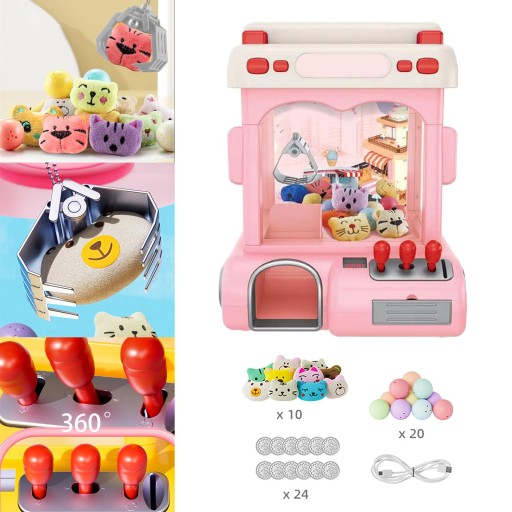 Cechy: Ta lalka symuluje prawdziwą maszynę do pazurów, z muzyką, kolorowymi światłami i dźwigniami sterującymi, które mogą ćwiczyć koordynację ręka-oko dzieci.