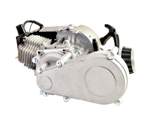 Wysokiej jakości Silnik poziomy Mini-Cross, Mini Quad, 50cc 2T, automat, srebrny. Silnik kompletny wystarczy tylko zamontować.