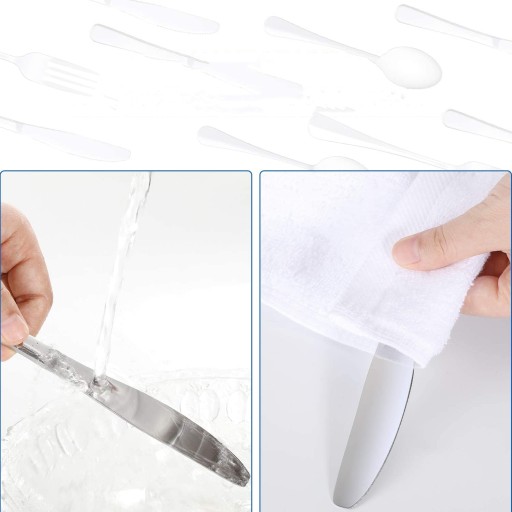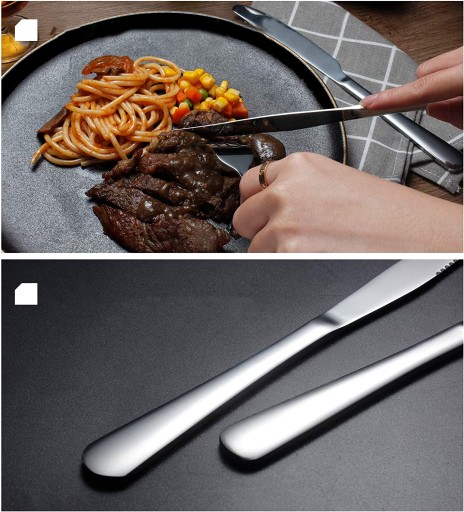 【Łatwy w pielęgnacji i nadaje się do mycia w zmywarce】🍗 zestaw sztućców jest prosty i wyjątkowy. Nie plami się ani nie rdzewieje. Idealnie nadaje się do codziennego użytku. Nasze sztućce nadają się do mycia w zmywarce. Aby jednak zachować świeży i błyszczący wygląd, zalecamy używanie zmywarki do naczyń tak rzadko, jak to możliwe.