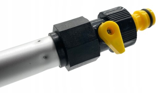 Szczotka wyposażona jest w końcówkę umożliwiającą podłączenie do źródła wody, która dopływa do szczotki.