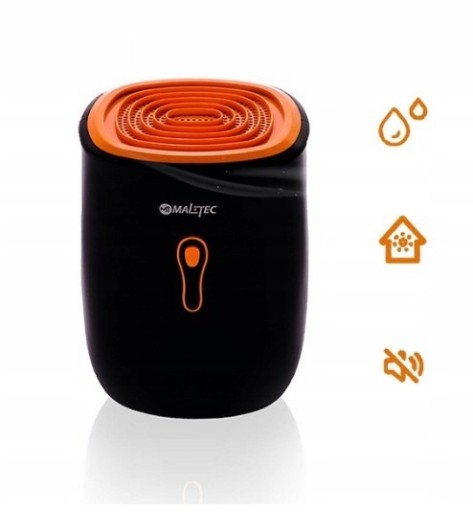 Specyfikacja techniczna: Producent: MalTec Model: DH-800 Wykonany z wysokiej jakości materiałów Typ zasilania: sieciowe Napięcie zasilania: 220-240V Moc: 22W Zbiornik na wodę: 800ml Wydajność: 300ml/dzień - przy 30°C, 80% Wąż do odprowadzania wody: 1m Maksymalna wielkość pomieszczeń: 25m2 Długość przewodu: 1,5m Wymiary produktu: 22,5x15,5x14cm Wymiary opakowania: 18x20,5x31cm Waga: 1kg
