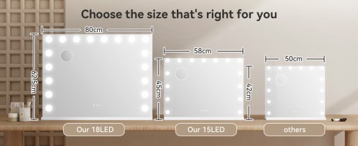 【Standardowe wymiary i funkcje】: powierzchnia lustra ma wymiary 58x45 cm. Prawdziwe hollywoodzkie lustro do makijażu. Port ładowania USB 12 V / 1 A z boku lustreka ładowania telefonu.