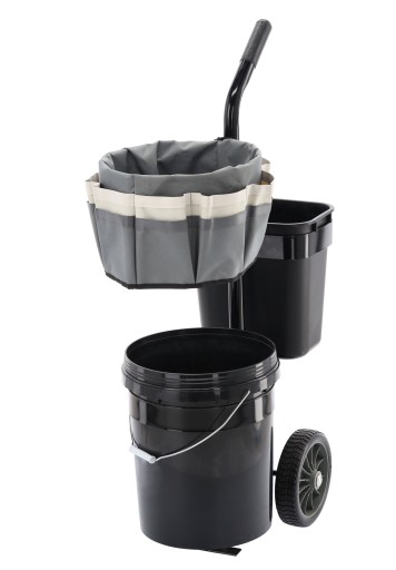 Wózek został wyposażony w przestronne i wytrzymałe pojemniki, które pomieszczą wszystkie niezbędne narzędzia i materiały. Pas z przegródkami zapewnia bezpieczne przenoszenie narzędzi o różnych kształtach i rozmiarach. W skład zestawu wchodzi również specjalny uchwyt na wiaderko, dzięki czemu nie stracisz żadnej gotowej mieszanki do podlewania roślin.