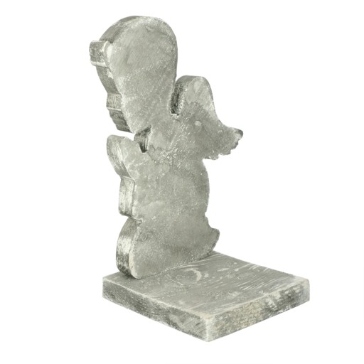 Piękna drewniana statuetka w kształcie anioła z praktyczną kwadratową podstawą.