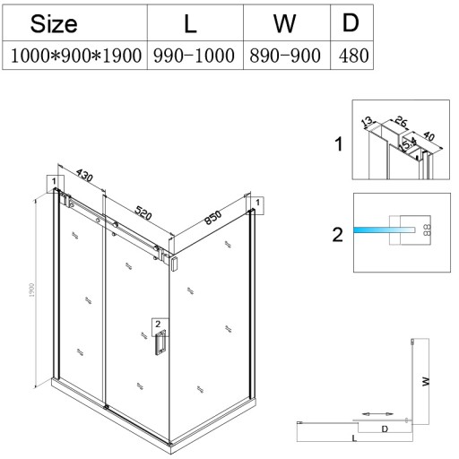 DRZWI W KABINIE MOŻNA ZAMONTOWAĆ TAK ŻEBY OTWIERAŁY SIĘ NA LEWĄ LUB PRAWĄ STRONĘ - W ZALEŻNOŚCI OD PREFERENCJI. TO CZYNI KABINĘ UNIWERSALNĄ - PRAWO LUB LEWOSTRONNĄ.