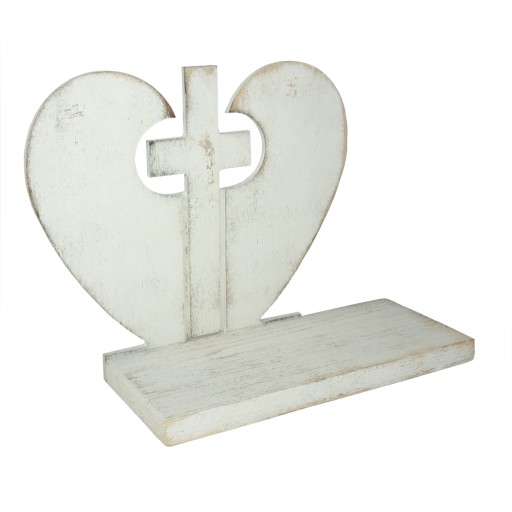 Drewniana statuetka serce krzyż nagrobny dekoracja nagrobna na pomnik 38 cm