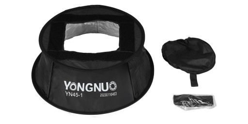 Softbox Yongnuo YN45-1 to kompaktowy i wydajny modyfikator światła o średnicy 45 cm, przeznaczony do pracy z lampami z serii Yongnuo YN300. Zapewnia miękkie, przyjemne dla oka oświetlenie. Dzięki niemu pozbędziesz się ostrych cieni, które mogą niekorzystnie wpływać na jakość Twoich zdjęć i filmów. Jego wnętrze wykończone srebrną powłoką skutecznie odbija światło, działając jak reflektor. Równocześnie warstwa białego materiału zapewnia optymalną miękkość. Wystarczy jeden szybki ruch ręki, aby rozłożyć softbox Yongnuo YN45-1. Solidne rzepy umożliwiają błyskawiczne i solidne połączenie z lampą. W zestawie znajduje się również praktyczny pokrowiec, który ułatwia przechowywanie i transport.