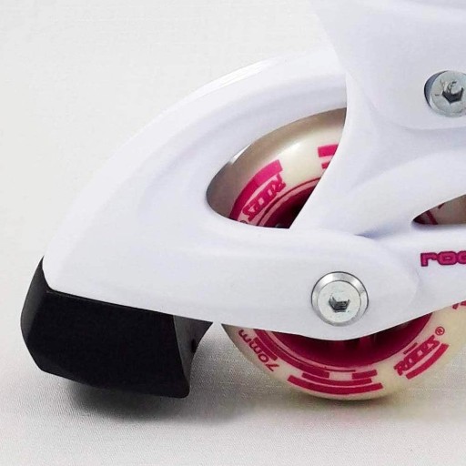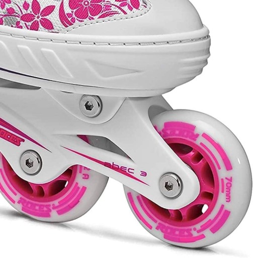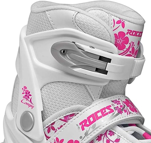 Roces Compy 8.0 Dla Dziewczynki to dziecięce rolki dobre do rozpoczęcia swojej przygody z tym spotrem. Posiadają możliwość regulacji rozmiaru, dzięki czemu dzieci, którym intensywnie rosną stopy, będą mogły się nimi cieszyć przez kilka sezonów. Te rolki od Roces posiadają miękki but. Miękki but zapewni Ci świetne dopasowanie i komfort. Rozmiarówka Roces rolki jest zaniżona. Dlatego zalecamy wybór rozmiaru o jeden numer większego niż Twoje obuwie codzienne.
