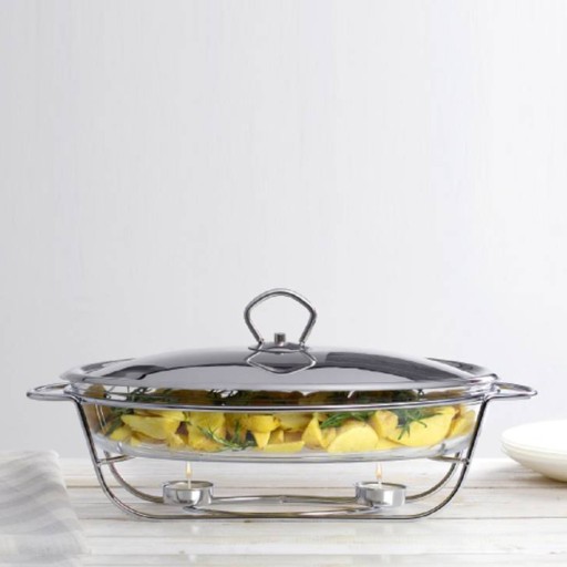 Naczynie żaroodporne o pojemności 3 l z linii Helios marki Ambition wspaniale sprawdzi się podczas przyjęć i rodzinnych spotkań. Do naczynia dołączony został stelaż na świeczki typu tealight, które mają za zadanie utrzymać danie w odpowiedniej temperaturze po wyjęciu z piekarnika. Konstrukcja stelaża umożliwia bezpieczne postawienie gorącego naczynia na stole.