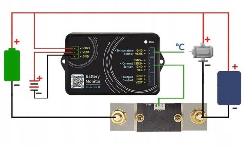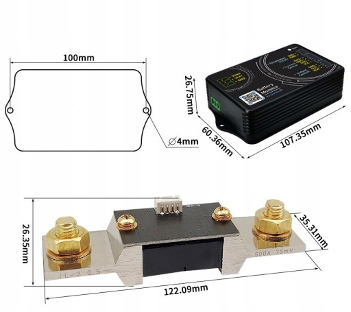 - bocznik do pomiaru prądu i śruby wykonane są z czystej miedzi, która ma dobrą przewodność elektryczną i niskie zużycie energii. W stanie gotowości nie zużywa zbyt dużej mocy baterii