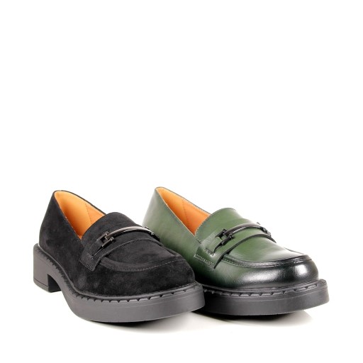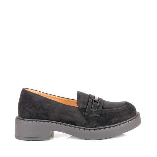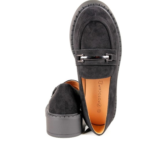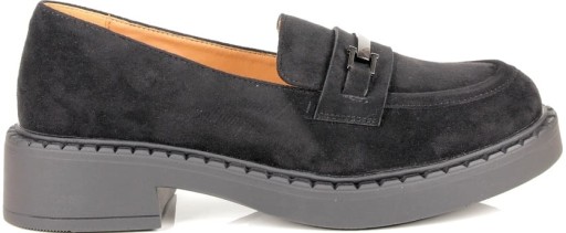 DAMSKIE PÓŁBUTY MOKASYNY NA GRUBEJ PODESZWIE Z KLAMRĄ CZARNE ZAMSZOWE
