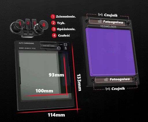 - Regulacja poziomu ściemnienia widoku po automatycznym przyciemnieniu się filtru