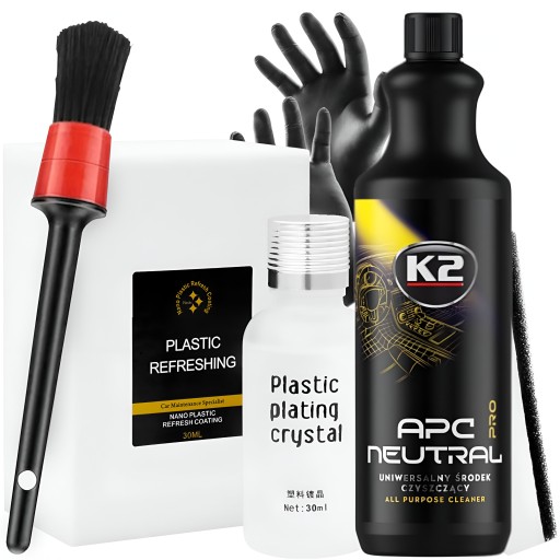 Kompleksowy zestaw środków do czyszczenia, odnowy i renowacji plastików jest stworzony, aby kompleksowo zadbać o wygląd wnętrza i zewnętrznych elementów plastikowych Twojego samochodu.