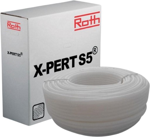 Oryginalna rura ROTH X-PERT S5 + Swoją wyjątkowość X-PERT S5 + zawdzięcza metodzie wytwarzania, polegającej na jedno-czesnym wytłaczaniu wszystkich warstw rury (metoda koekstruzji). Ten sposób produkcji sprawia, iż w polietylenie zachodzi proces zagęszczania struktury molekularnej, przez co następuje polepszenie jakości otrzymanego tworzywa. Rura Roth X-PERT S5 + znajduje zastosowanie zarówno w montażu ogrzewania podłogo-wego, jak i instalacji grzejnikowych. Składa się z rury bazowej z PERT otoczonej warstwą antydyfuzyjną EVOH, a następnie warstwą ochronną również z PERT. Pomiędzy poszczególnymi płaszczyznami występuje spoiwo dodatkowo wzmacniające konstrukcję rury.