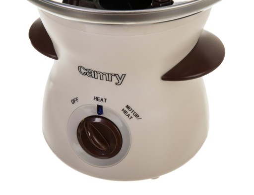 Po roztopieniu czekolady przełącz pokrętło do pozycji MOTOR/HEAT i obserwuj jak kaskady pysznego napoju spływają po piętrach fontanny.