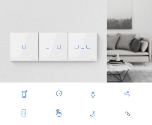 SONOFF TX Seria - Inteligentne przełączniki dotykowe sieci WiFi. Urządzenia połączone przełącznikami mogą pracować, interfejs może je kontrolować oddzielnie za pomocą aplikacji.