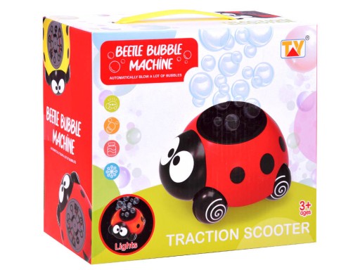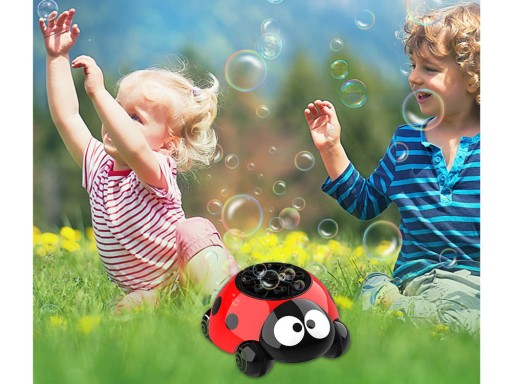 Podświetlana biedronka to urocza maszynka do puszczania kolorowych baniek mydlanych. Dzieci uwielbiają kolorowe, tęczowe bańki mydlane, a podświetlana mobilna biedroneczka to zapewni.