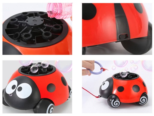 Zabawka pozwala na puszczanie kolorowych baniek z automatu. Wystarczy nalać płyn do otworu, w którym znajduje się tarcza z oczkami, włączyć przycisk znajdujący się na spodzie biedronki, aby wiatraczek wypuszczał do góry tęczę kolorowych baniek.