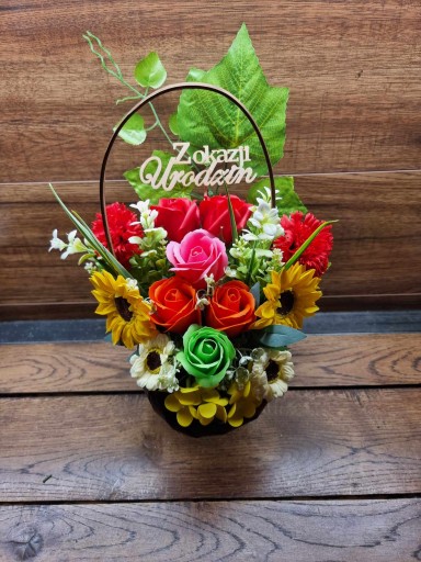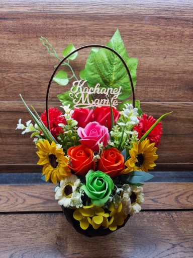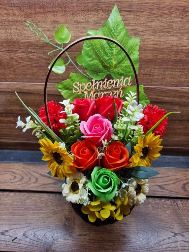 Bukiet kosz upominkowy kwiaty mydlane PACHNĄCE