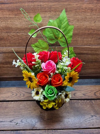 ❤️ Ozdobny kosz, bukiet z kwiatami mydlanymi - piękny prezent oraz delikatnie pachnąca dekoracja dla twojego wnętrza ❤️