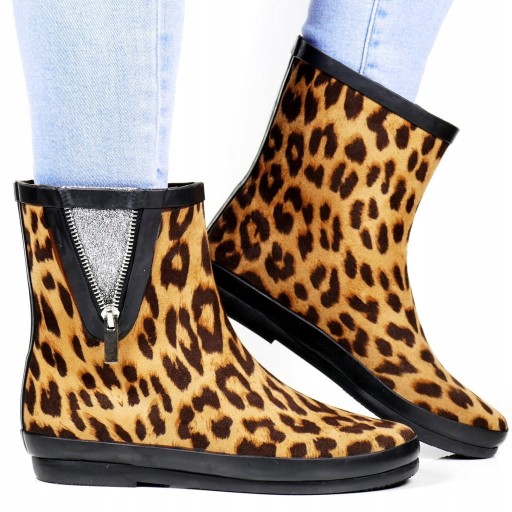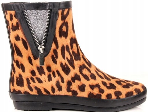 WYGODNE DAMSKIE KALOSZE KRÓTKIE SZTYBLETY ZAMSZOWE PANTERKA