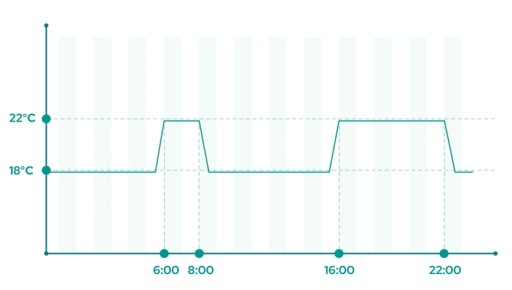 Termostat oferuje sześć programowalnych okresów (5+1+1), co pozwala na indywidualne ustawienia dla poszczególnych dni roboczych oraz weekendów.