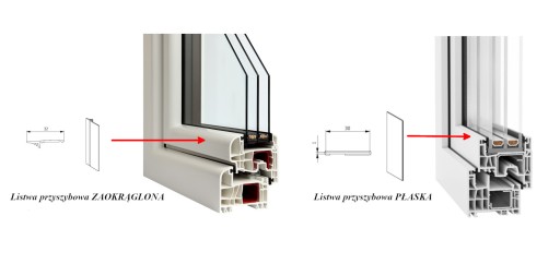 RODZAJE PROWADNIC - w zależności od rodzaju listwy przyszybowej okna dobieramy do rolet odpowiednie typ prowadnic: płaska lub zaokrąglona.