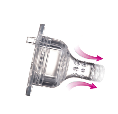 Soczewka odpowietrzająca (nowy system SUPER vent) w kołnierzu smoczka eliminuje mieszanie się pokarmu z powietrzem. Przed pierwszym użyciem sprawdź, czy soczewka nie jest sklejona, delikatnie rozciągając ją między palcami.