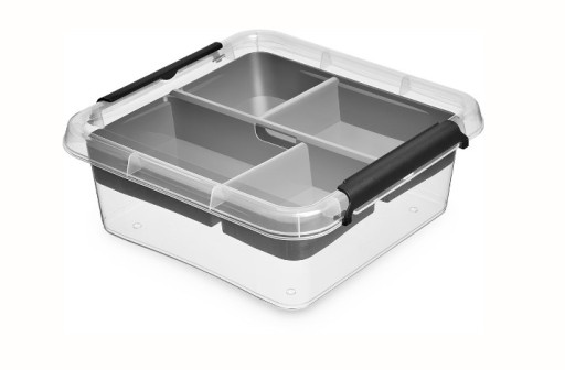 Modułowość pudeł zapewnia optymalne wykorzystanie przestrzeni. Praktyczne klipsy zapewniają bezpieczne przechowywanie, a ich specjalna konstrukcja pozwala na uchylenie pokrywy po otwarciu tylko jednego klipsa z dowolnej strony.