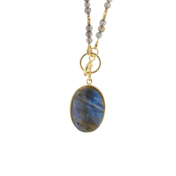 Naszyjnik z zawieszką z Labradorytu został wykonany ręcznie na lince stalowej.