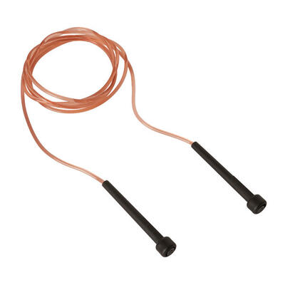 Zdejmij znajdującą się na końcu rączki nasadkę. Aby określić prawidłową długość liny, postaw na niej stopę pośrodku i podnieś rączki skakanki do góry, wzdłuż ciała: rączki powinny znajdować się na wysokości barków. Odetnij nadmiar liny. rączki powinny znajdować się na wysokości barków!