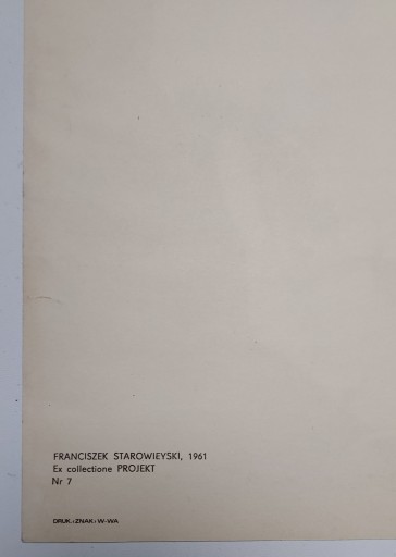 Typografia na cienkim kartonie, sygnowana w lewym dolnym rogu " Starowiejski ", wydana w firmie Znak w Warszawie. Stan zachowania oceniam na co najmniej dobry. Myślę że zdjęcia dobrze oddają stan plakatu