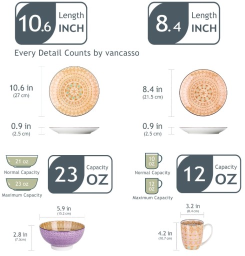 ✅ 4 miseczek o średnicy 15,2cm, wysokości 7,3cm oraz pojemności 650ml.