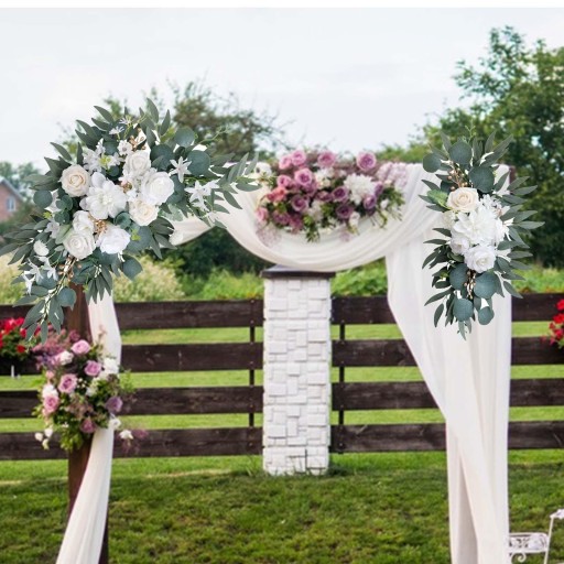 [Trwałe]: wieniec do dekoracji łuku ślubnego jest wykonany ręcznie, może być używany przez wiele lat, wykonany z jedwabnego kwiatu, nigdy nie więdnie i nie opada, wygląda pięknie, bez konserwacji.