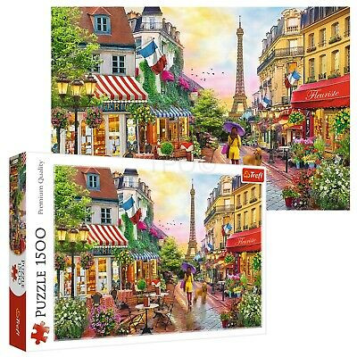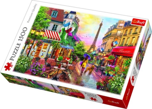 Puzzle 1500 elementów z przedstawiające malowany widok na jedną z ulic Paryża. Po ułożeniu powstanie obrazek o wymiarach 850 x 580 mm. Wysoką jakość, nasycenie kolorów i bezpieczeństwo układania zapewnia wykorzystanie materiałów ekologicznych.
