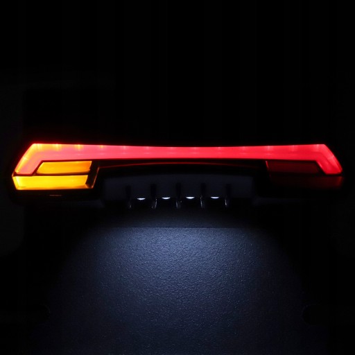 3. Dwukolorowa skuteczna listwa świetlna LED, działająca jako czerwone światło do jazdy/hamowania i bursztynowe kierunkowskazy.
