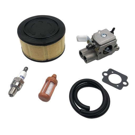 zawiera: 1x gaźnik, 1x powietrza, 1x , 1x przewód paliwowy, 2x uszczelki wstępne, 1x świeca zapłonowa