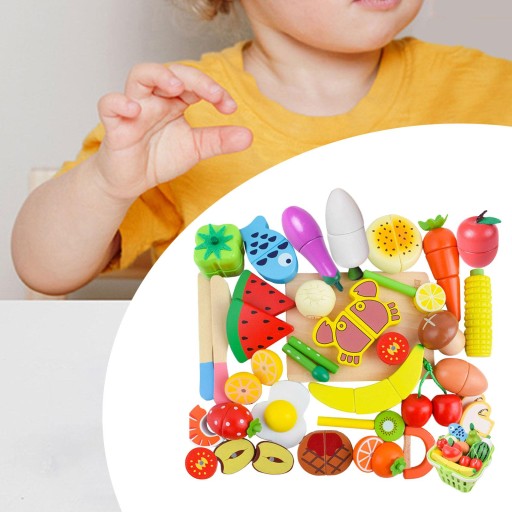 35 sztuk Zestaw do krojenia owoców i warzyw Drewniane zabawki kuchenne dla dzieci w wieku 3+