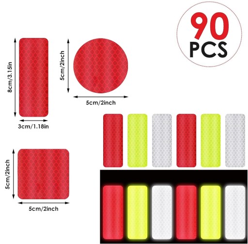 Zestaw 90 Odblaskowych Taśm Naklejek Świecących w Ciemności - Widoczność i Bezpieczeństwo Podczas Nocnych Przejazdów Rowerowych