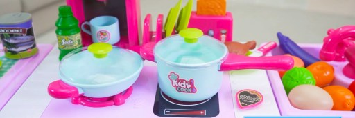 W zestawie znajdziesz mnóstwo dodatkowych elementów wyposażenia kuchennego, które nie tylko uradują malucha i zapewnią mu długie godziny zabawy, ale także rozwiną jego zdolności manualne oraz zaznajomią dziecko z podstawami wykonywania domowych czynności.
