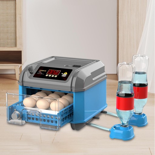 Automatyczne uzupełnianie wody: Dolna taca na wodę wylęgarni jaj jest podzielona na przegrody, aby spełnić różne wymagania dotyczące cyklu inkubacji, a odparowywanie wody można regulować za pomocą butelek z wodą.