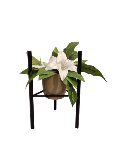 Solidna, trwała konstrukcja. Nogi stojaka wykonane są z metalowego kwadratowego profila o szerokości 16 mm, który gwarantuje stabilność. Podstawa na doniczkę wykonana z profila o średnicy 7 mm.