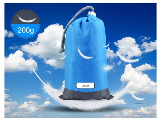 Złożona mata ma wymiary małego woreczka, który zajmuje bardzo mało miejsca w torbie lub plecaku i jest ultra lekka. Rozmiar po rozłożeniu maty to 200 cm x 200cm. Uzyskana w ten sposób powierzchnia to 4 m2, która może wygodnie pomieścić do 6 dorosłych osób lub nawet 8 dzieci. Elastyczna tkanina ułatwia ponowne złożenie maty, dzięki czemu w kilku ruchach ponownie będzie rozłożona.