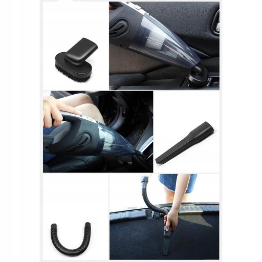 Długa płaska dysza do zasysania popiołu z papierosów, okruchów ciastek, okruchów gumki, włosów, ryżu, główka szczoteczki do czyszczenia nawiewu klimatyzacji, podkładka pod nóżki, wąż do czyszczenia bagażnika, obszar pod siedziskiem