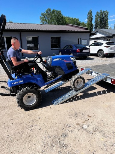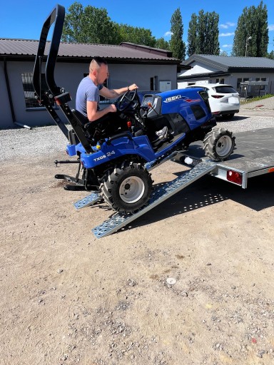 Dwa ostatnie zdjęcia przedstawiają wjeżdżający traktor ważący ponad 800 kg po najazdach z innej aukcji, a mianowicie 200 cm.