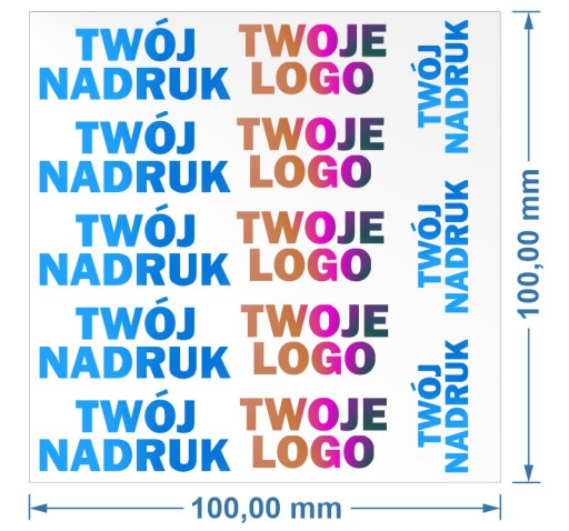 - Druklejka - 1szt - arkusz 100x100mm z własnym nadrukiem - umieścimy na arkuszu dowolny nadruk lub nadruki według dostarczonego pliku graficznego i zaakceptowanego projektu*.