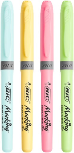 Komplet 4 sztuk zakreślaczy BIC Highlighter Grip Pastel pozwoli Ci podkreślić najważniejsze punkty w dokumencie, by móc je później z łatwością znaleźć.