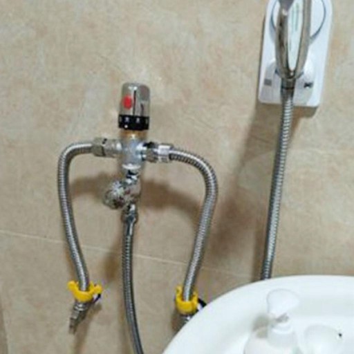 Wbudowany element kontroli temperatury, w przypadku awarii zimnej wody, urządzenie zabezpieczające automatycznie odcina dopływ ciepłej wody, aby zapobiec oparzeniom.